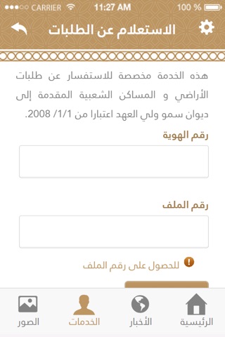 - الاستعلام عن الطلبات: هذه الخدمة مخصصة للاستفسار عن حالة الطلبات المقدمة من قبل المتعاملين.