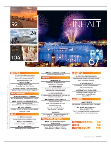 Spannendes Kreuzfahrtmagazin mit interessanten Reportagen und vielen Tipps rund um das Thema Kreuzfahrten.