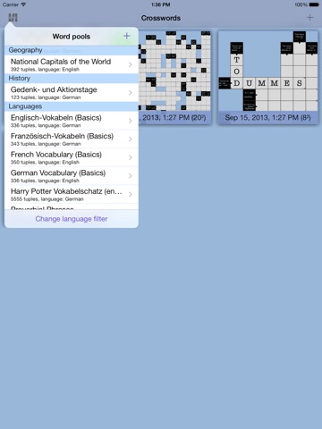 Cruciverber allows you to download and add (and upload) your own word pools with your own questions and answers (word pools are kind of the "lexicons behind crossword puzzles"). Therefore Cruciverber is flexible and remains joyful and instructive for a very long period of time!