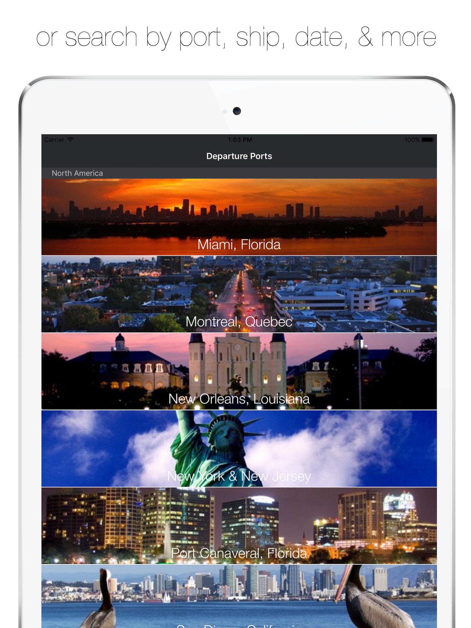 Youll find the following cruise destinations searchable in the app: