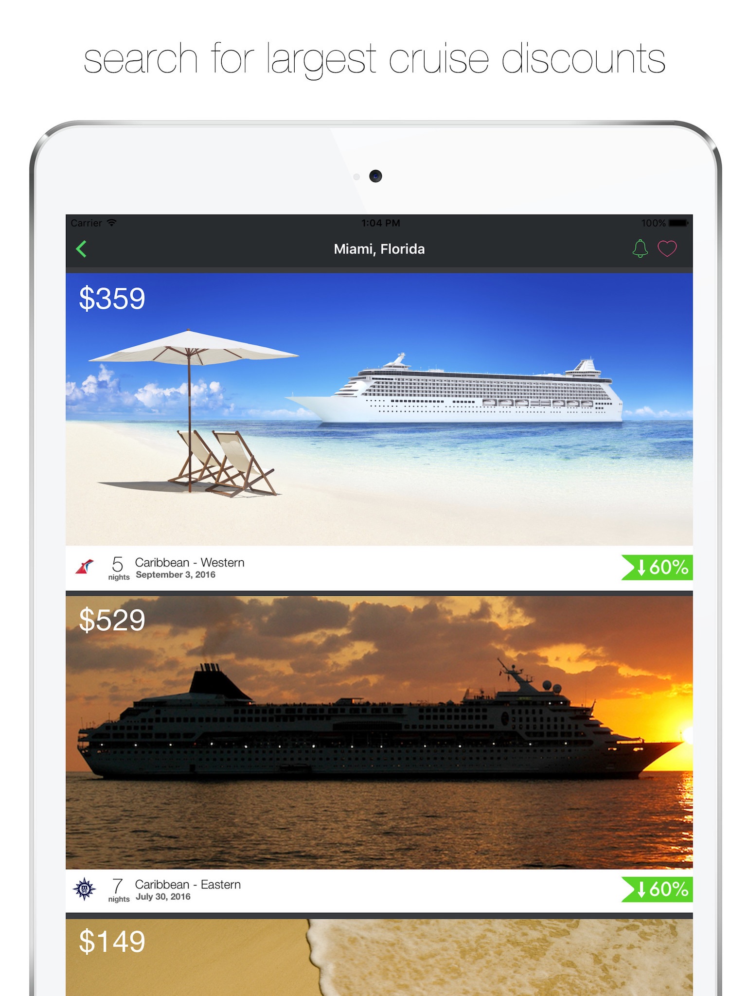 Cruise Deals App offers 3 main functions: