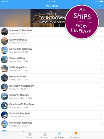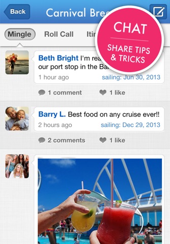 Embark on Cruise With Us and make friends with others on your cruise while exploring your ship and learning more about the port stops on your itinerary. Chat in real time and share pictures, tips and experiences with fellow cruisers. You’ll enjoy your vacation before setting foot on deck!
