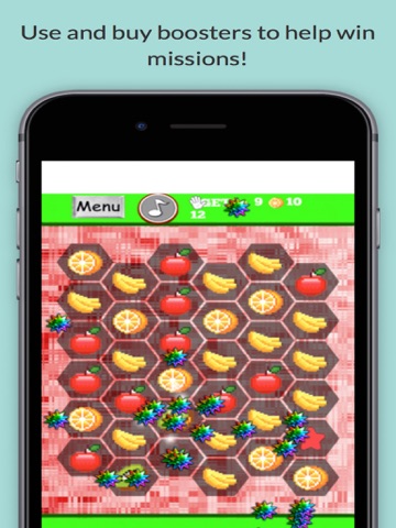 The objective is to collect the number of fruits designated in the missional goals for each level.
