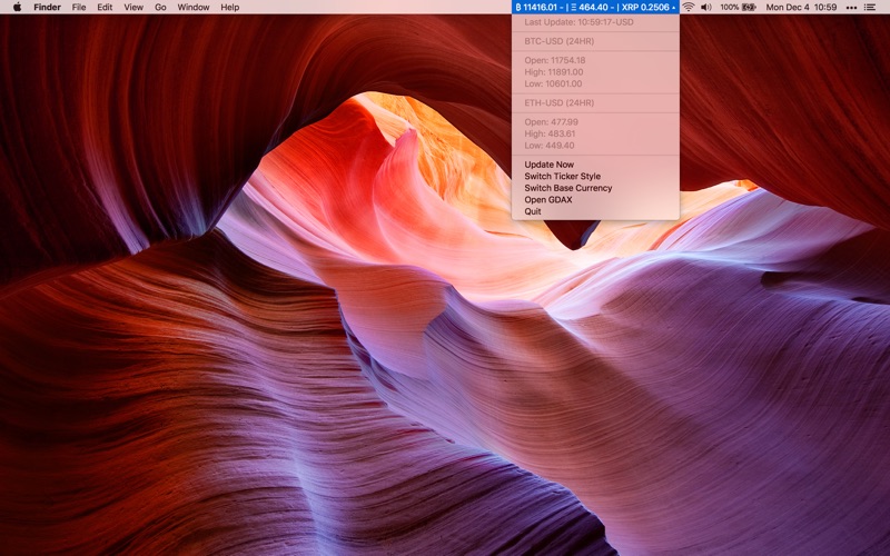 An additional button allows you to open GDAX in your default browser to easily make trades when the prices are to your liking.