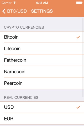 * Exchange rates from Bitcoin, Litecoin, Namecoin, Feathercoin and Peercoin to USD and EUR.