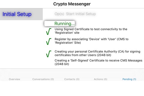 1st, each user maintains their own CA (Certificate Authority). When creating a Contact; CSRs are created, exchanged then signed by each others CA. Once each user has a Certificate signed by the other they are used to create CMS (Cryptographic Message Syntax) data which contains the actual content of your messages.