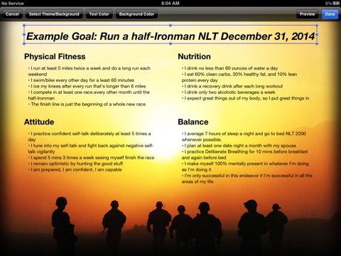 CSF2 Goals allows users to keep track of their goals using the 7-step goal setting process used in the US Armys CSF2 program.