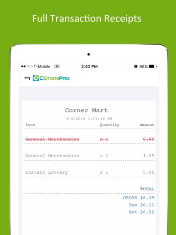 - See full transaction receipts with line voids, full transaction voids and no sale register openings