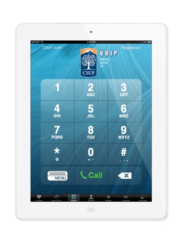 Our CSUF VoIP application turns an iPad into a telephone using your campus extension. Our app offers HD quality sound and video calling, so you can talk face-to-face with people using your campus extension while you’re away from the office.