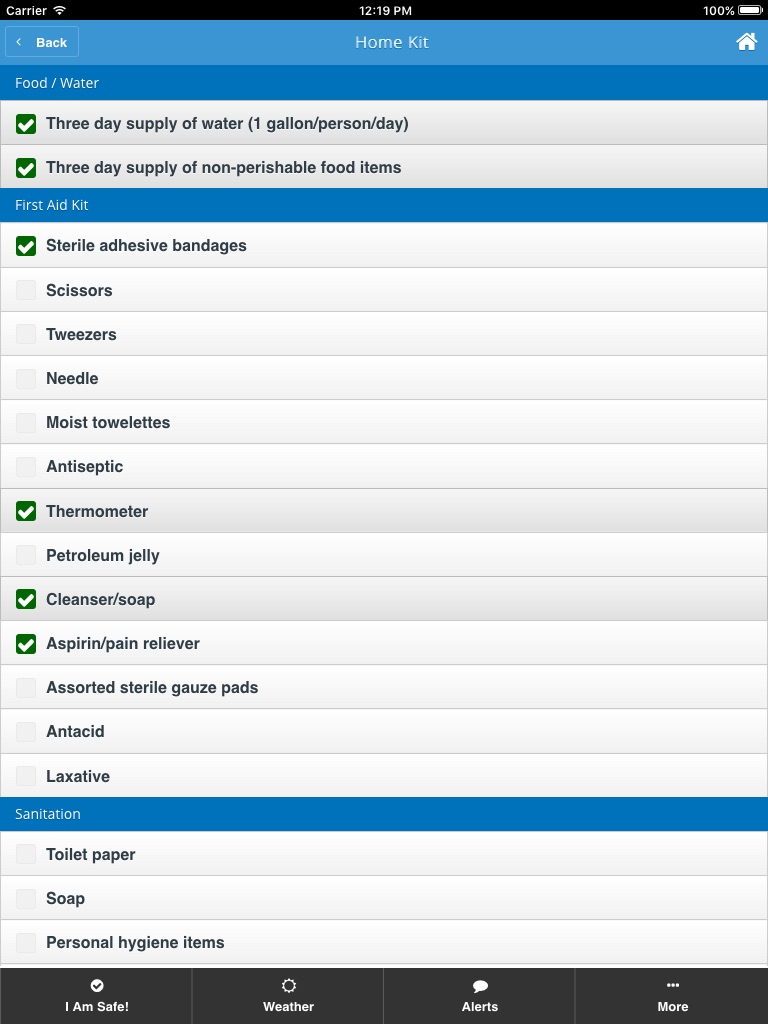 The Emergency Preparedness Mobile Application will integrate with a phone’s text messaging, email, and social networking, allowing residents to inform family members when they are safe. Real-time notifications can be sent directly to the device providing up-to-the-minute information for residents. Links to Emergency needs such as shelters, food, and assistance will be at hand.