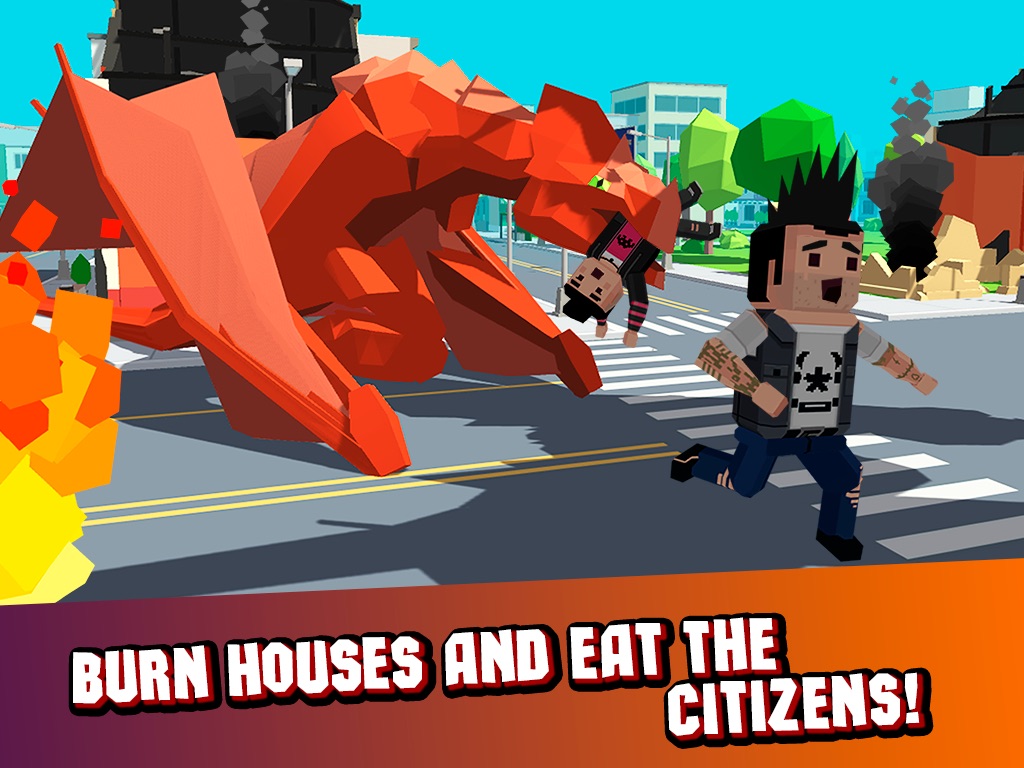 Become a winged pixel nightmare – use the fire, burn citizens, attack skyscrapers cars and helicopters. Show them who is the most powerful creature here!