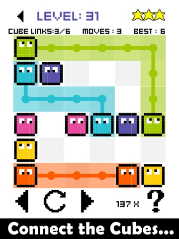Connect matching cubes to create a flow. Pair all colors, and cover the entire board to solve each puzzle. But watch out, flows will break if they cross or overlap!