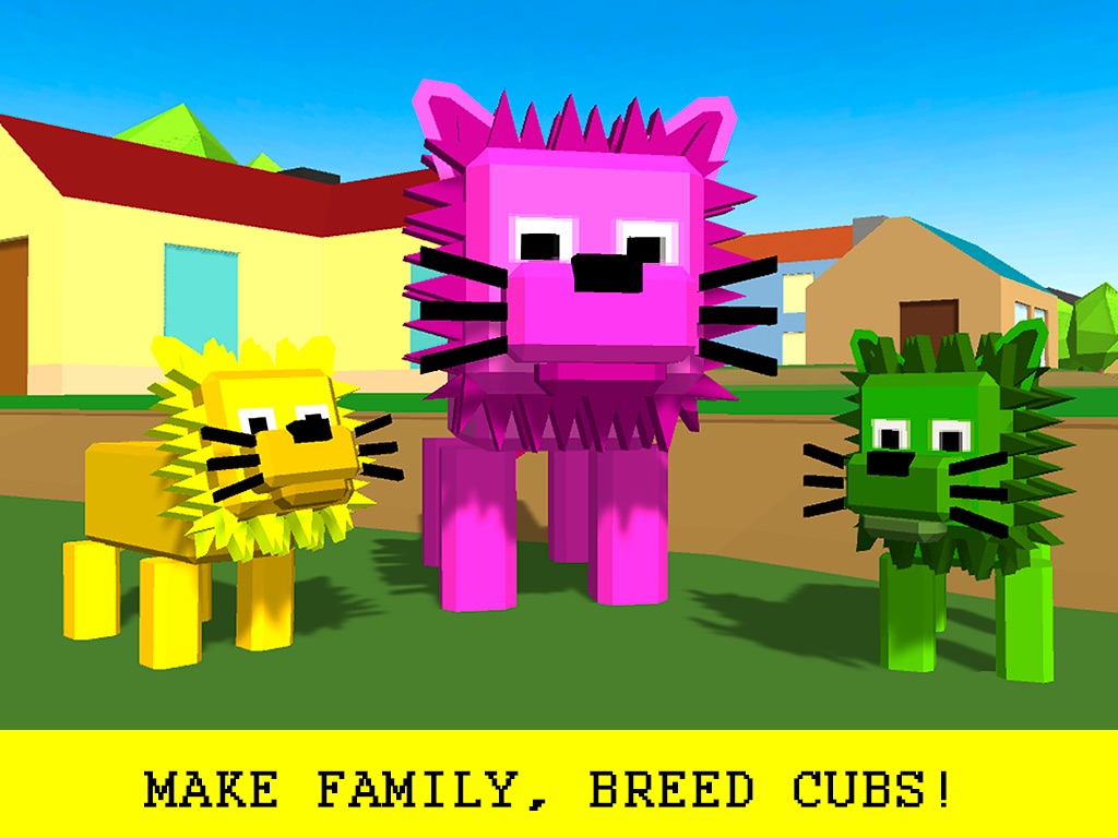 Battle against other predators and watch out not to be killed - show them your power instead! Explore this cute cubical world as a cube lion, but don’t relax - it might be even more unpredictable than you can imagine! Survive as long as you can, chase your prey mercilessly, fight with other lions or make them part of your pride! Mate with females and breed cubs! Earn experience and level up your lion! Buy power-ups and customize your lion as you want!