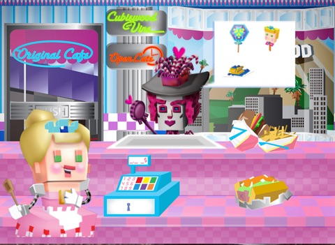 In the game, the player, will start with your his/her own Cubie Cafe in LA. Customers will come into the Cafe and give their order. (A picture of each item will pop up in the customers conversation bubble.) The player will then need to find the item on the Cubie Cafe pop up play tent and scan it with their tablet camera. If the item is scanned correctly the player will pay for it with virtual money by dragging it in the virtual cash register.