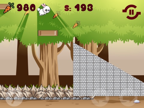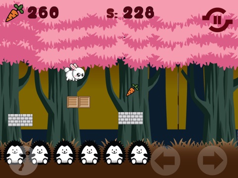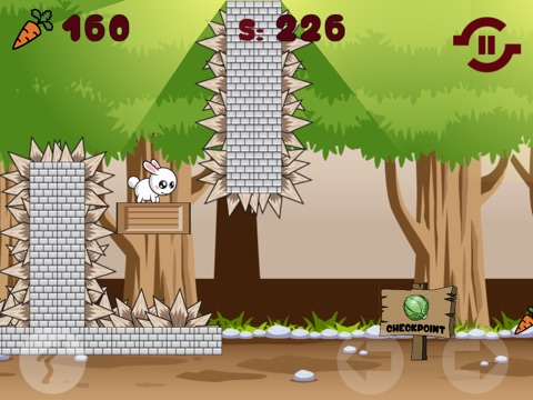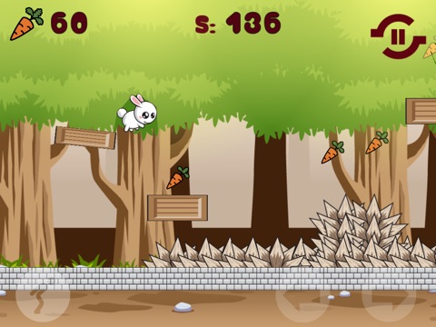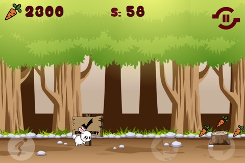 Help a fluffy and cuddly rabbit to run, leap and avoid many different, challenging and interesting obstacles. Try to collect as many carrots as you can, because your going to need them for checkpoints. Tap the left side of the screen to jump and the right side to run forward and backward.