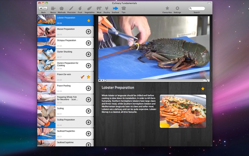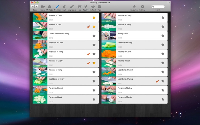 In fact, lets do that: it could support full screen mode in lion, or resizing the window, it could contain links to more information elsewhere online. The videos are often ridiculously short, and the action seems to be sped up-- just the opposite of what youd want. Its clearly a quick port of the iPad app-- some time spent looking at best-of-breed mac apps would do the developer good, it simply doesnt feel at home on the mac. The content seems OK-- I feel like there could be more depth. Imagine if each technique was accompanied by a few recipes that use it, or even just links to relevant wikipedia articles, or provided a space for discussion.