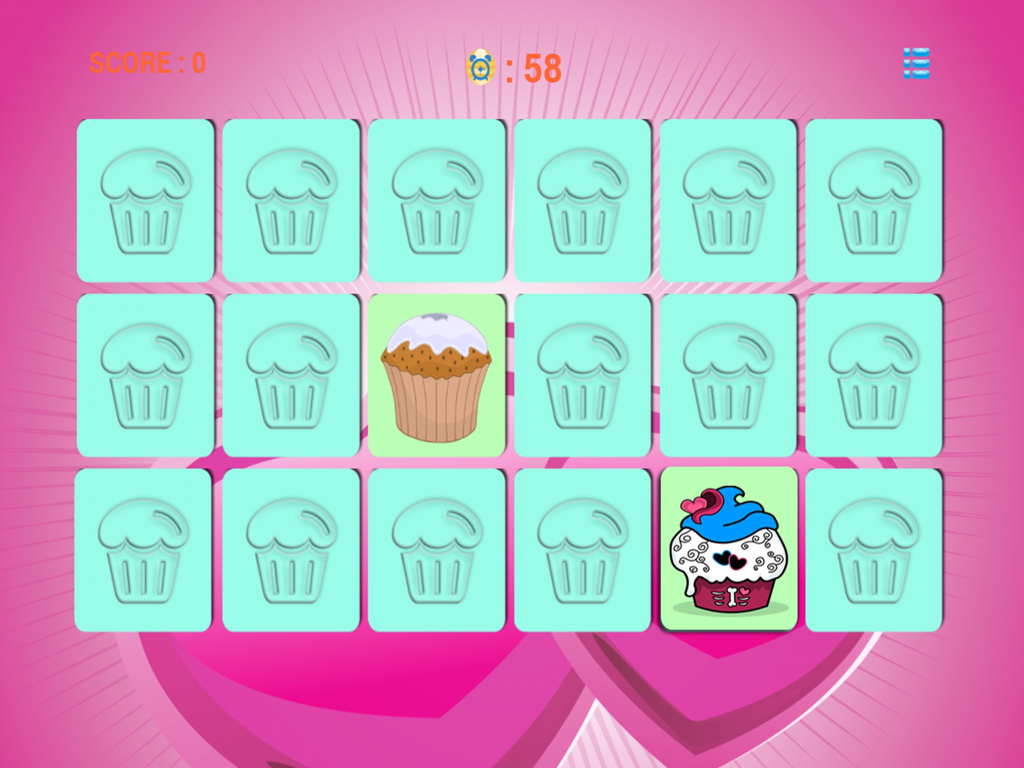 Feature Cupcakes matching game.