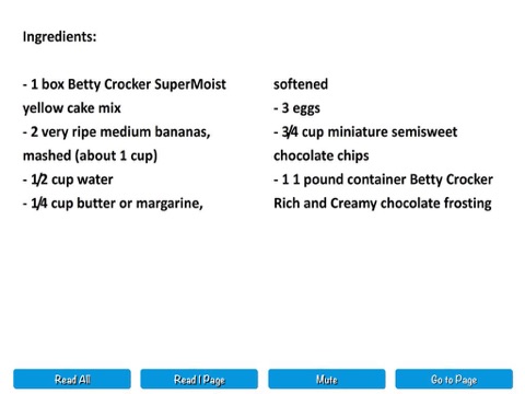 * In "Read All" mode, content of the recipe is read out continuously until the user presses the "pause" button