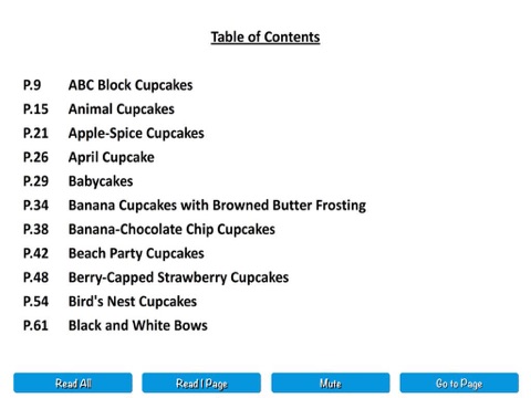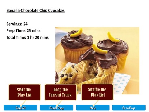 Cupcakes Recipe is an audio recipe, meaning that the recipe can not only be read, but also be listened. In "Read All" and "Read 1 Page" mode, contents of the recipe is being read out line by line, and word by word in standard English. So that you can "listen" to the recipe while you are busy with the cooking. Alternatively, you can turn off the audio (Muted Mode) and just read the recipe as a regular recipe. This audio recipe comes with a lot of useful and user-friendly features. Please refer to the Features section below for more details.