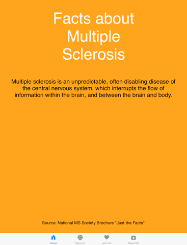 One of the purposes of this application is to raise awareness of Multiple Sclerosis (MS). Knowledge is power. Throughout the app you will find facts about MS. You will also find links to information about MS and MS research.