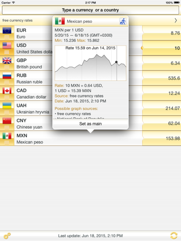I tried a few and this one came up on top. You can select which currencies to show. Then select any currency on the screen, enter your value, and the equivalent value for all the others are displayed. You can choose any of the displayed currencies, and the equivalents of all the others are immediately shown. This app is all you need!!