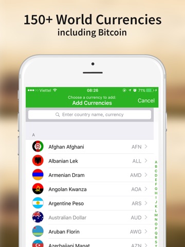 Currency provides up-to-date exchange rates for over 150 currencies and countries!