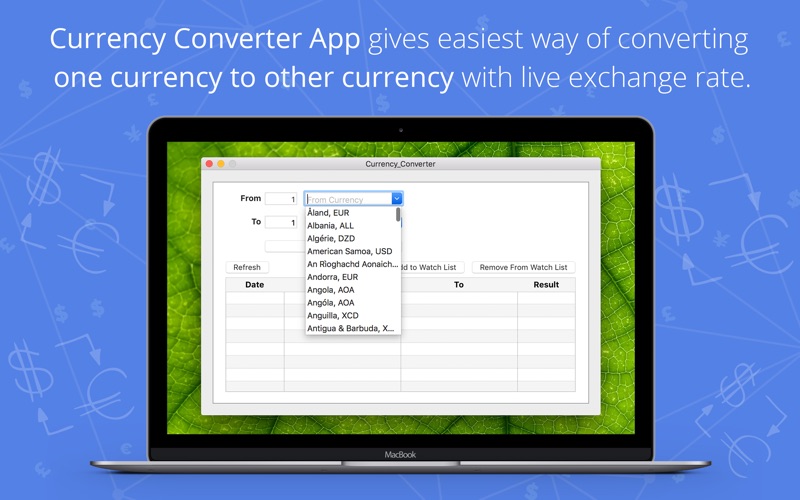- Refresh: Refresh whole Watch List to have latest exchange rate between 2 Currencies