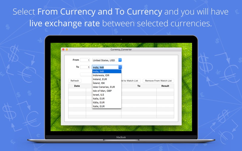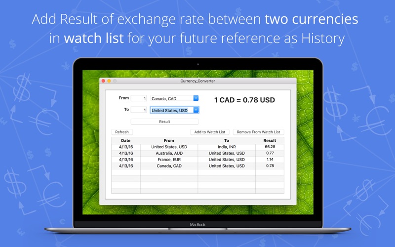 - Add to Watch List: Add Result of exchange rate between 2 Currencies in Watch list for your future reference as History