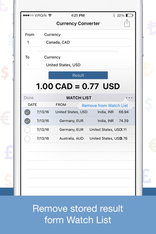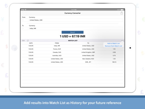- Add to Watch List: Add Result of exchange rate between 2 Currencies in Watch list for your future reference as History