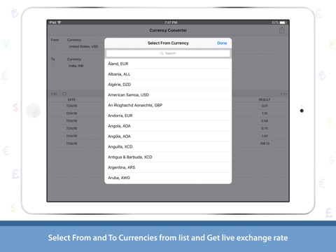 Currency Converter app gives easiest way of converting one currency to other currency with live exchange rate.