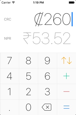 The built in multi-currency calculator allows you to add or subtract values in different currencies. This makes it easy to check how much money you have in total if you have money in different currencies with you.