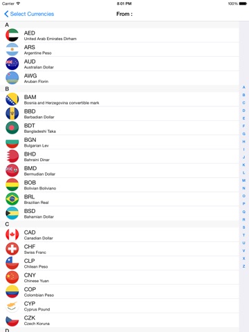 Simple, clear, beautiful design complemented with icons for each currency.