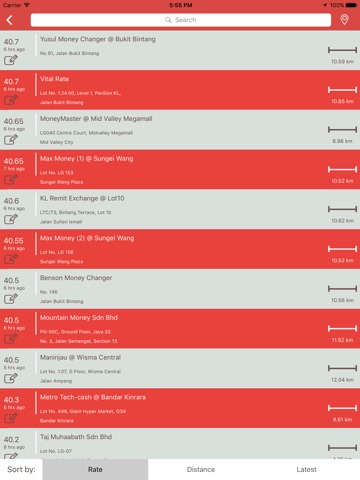 • Map/List View: Compare money changers by distance from your location, rate or last updated time