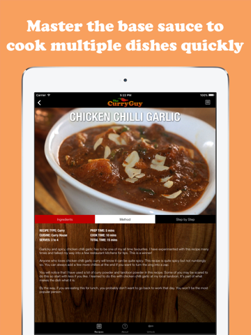 The Curry Guy app features over 250 recipes (over 25 of which are free of charge). Each of these recipes includes illustrated step-by-step instructions, designed to keep things simple in the kitchen.