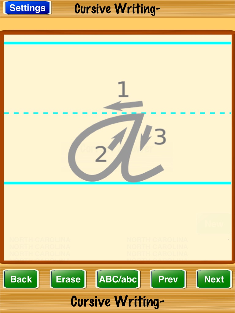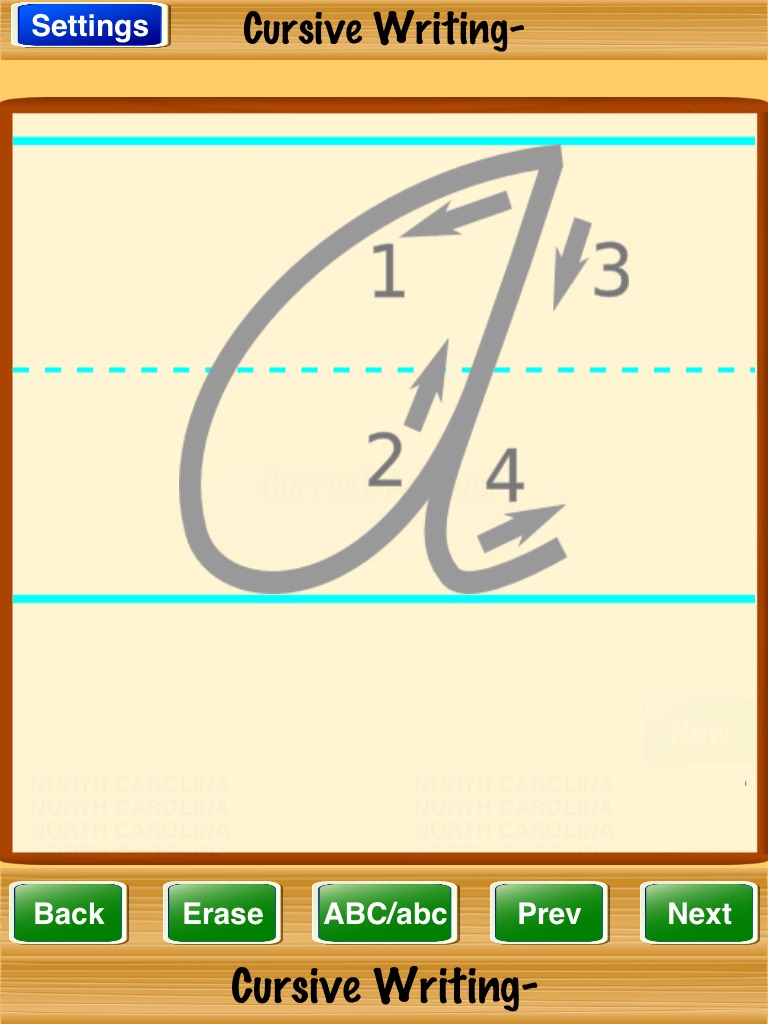 Cursive Writing- is a great way for the family to practice cursive writing. Select the options in the "Settings" screen. Play until you master the game.