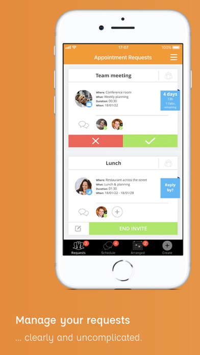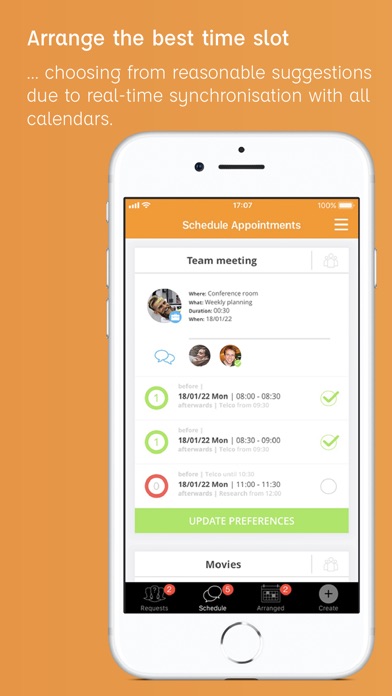 Our specifically developed CUSOON technology identifies potential appointment slots, which are compatible with the calendars of all participants. No more tedious entering of availabilities.