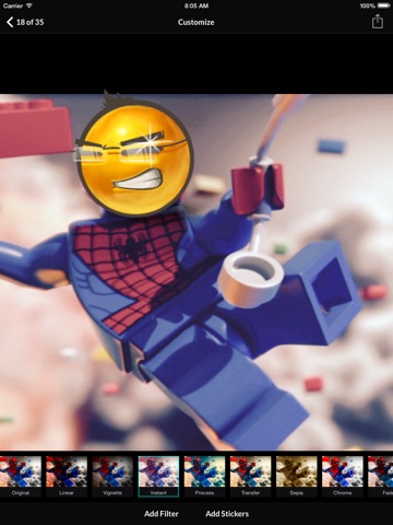 Well good news for LEGO Lovers. If youre fed up of the boring and plain wallpapers of LEGO, then this APP is for you! Navigate through the photos and customize them with photo filters and stickers all within the app!