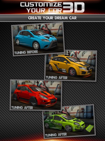 Amazing 3D car customization app for iOS! Features even more options for vehicle modification than "Need for Speed" and "Gran Turismo!" This software offers full 3D high-poly textured car models for full customization. Every car has hundreds of replaceable parts, including the bumpers, roof, hood, doors. Create your dream car, and test it out with drag racing!