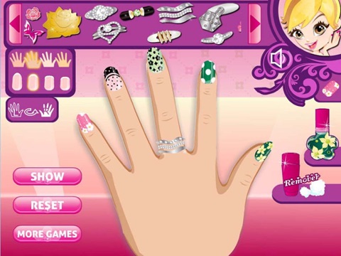 Imagine you are a nail artist and you own a fancy manicure salon where the girls come for perfect cool nails. Show your talents by creating a cool manicure for this girl, choose the nail shape you want, the colors you like best and some fancy hand accessories. You can choose from a variety of colors and patterns to create an artistic and trendy manicure. At the end, those hands should look perfect!
