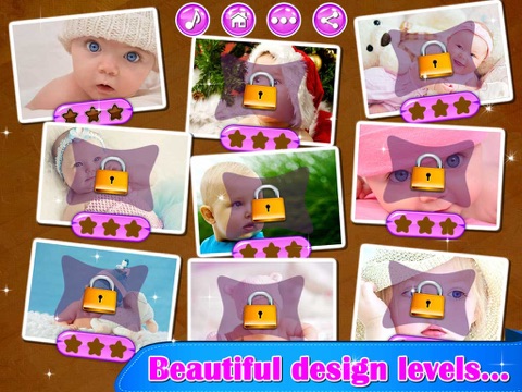 Puzzle pieces of lovely images of babies are scattered all around the game board – arrange them to get the baby puzzle picture! There are several levels for each cute baby photo – choose yours and start having fun! Kids always transfer joy and positive energy so whenever you need a little boost of enthusiasm you can just take a look at your baby pictures!