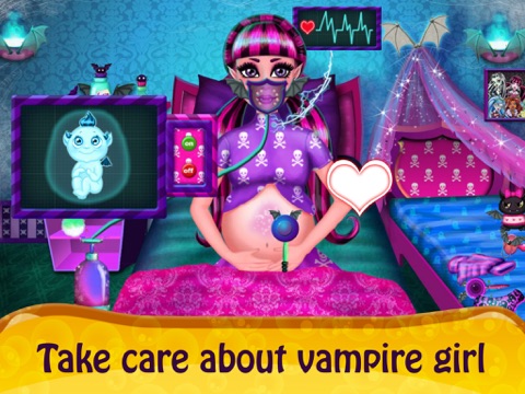 Vampire girl has very comfortable pregnancy and now she is about to give birth to her monster-baby. You are the one who is going to help her to successfully finish the job. There will be multiple tools which will help you work precisely. First of all don’t forget to pack everything, find all things which Vampires needs for delivery. Then ultrasound investigation and preparation to operation. When everything is finished take care about scared beautiful little monster, while her mother is recovering herself.