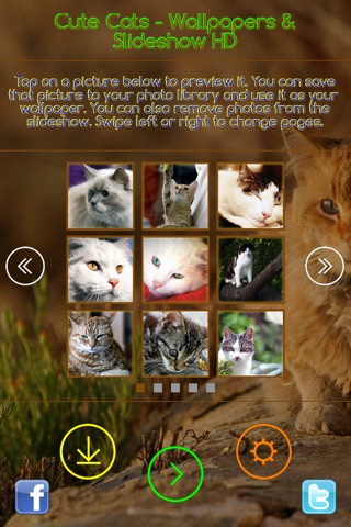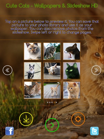 Cute Cats – Wallpapers & Slideshow HD offers you 45 carefully selected photos showing cute cats in different situations. Each photo was specially prepared for every iOS device and maintains HD quality in either portrait or landscape position! All wallpapers are already built-in in the application, so you dont need an internet connection to use this app!