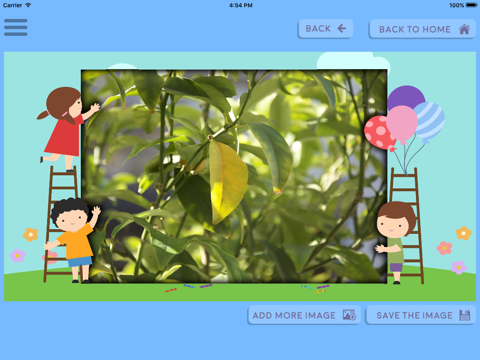 Its simple interface and outstanding menu of cute kids(cartoon) theme frames make it the best picture app in the Store and thats not at all, You can even add more than one image, and make it fully collage photos or delete the images. Fully customized App!!