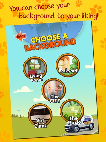 Pick from The City, The Backyard, The Living Room, The Park, and The Vet Clinic!