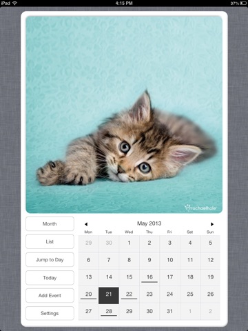 CuteCal, by Rachael Hale, is a cute and cuddly alternative to your everyday iPhone or iPad calendar. If you like cute cats, fuzzy critters, kittens, puppies, baby animals etc, then this calendar is for you. Adorable images 365 days a year!!! Links to your iPhone or iPad calendar automatically.