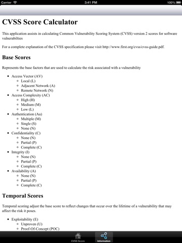 Common Vulnerability Scoring System (CVSS) provides an open framework for communicating the characteristics and impacts of IT vulnerabilities. CVSS consists of 3 groups: Base, Temporal and Environmental. Each group produces a numeric score ranging from 0 to 10, and a Vector, a compressed textual representation that reflects the values used to derive the score. The Base group represents the intrinsic qualities of a vulnerability. The Temporal group reflects the characteristics of a vulnerability that change over time. The Environmental group represents the characteristics of a vulnerability that are unique to any users environment. CVSS enables IT managers, vulnerability bulletin providers, security vendors, application vendors and researchers to all benefit by adopting this common language of scoring IT vulnerabilities.