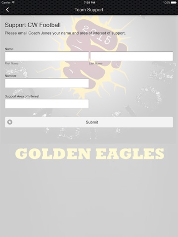 The Clovis West Golden Eagle Football App is for the coaches, players, parents and fans of the Mighty Golden Eagles Football program. Get up to date schedules, calendars, messaging, maps to games, weather, rosters and much more. Get CW Football 24/7 with this great app.
