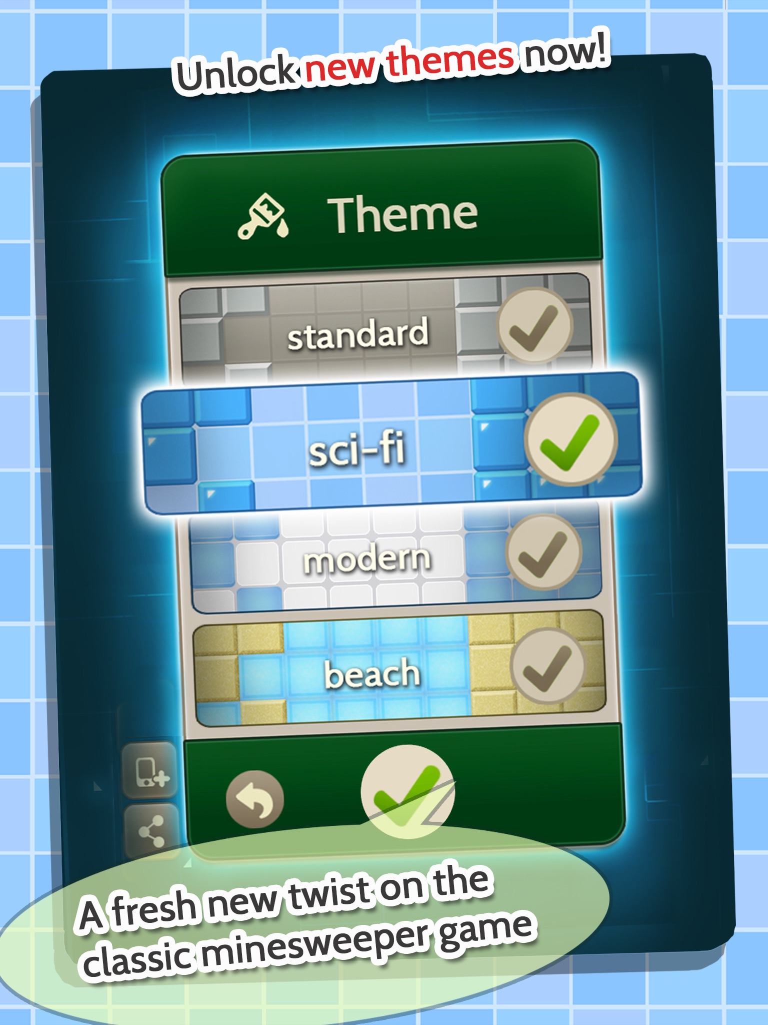 ・New themes to be unlocked when each level has been completed.