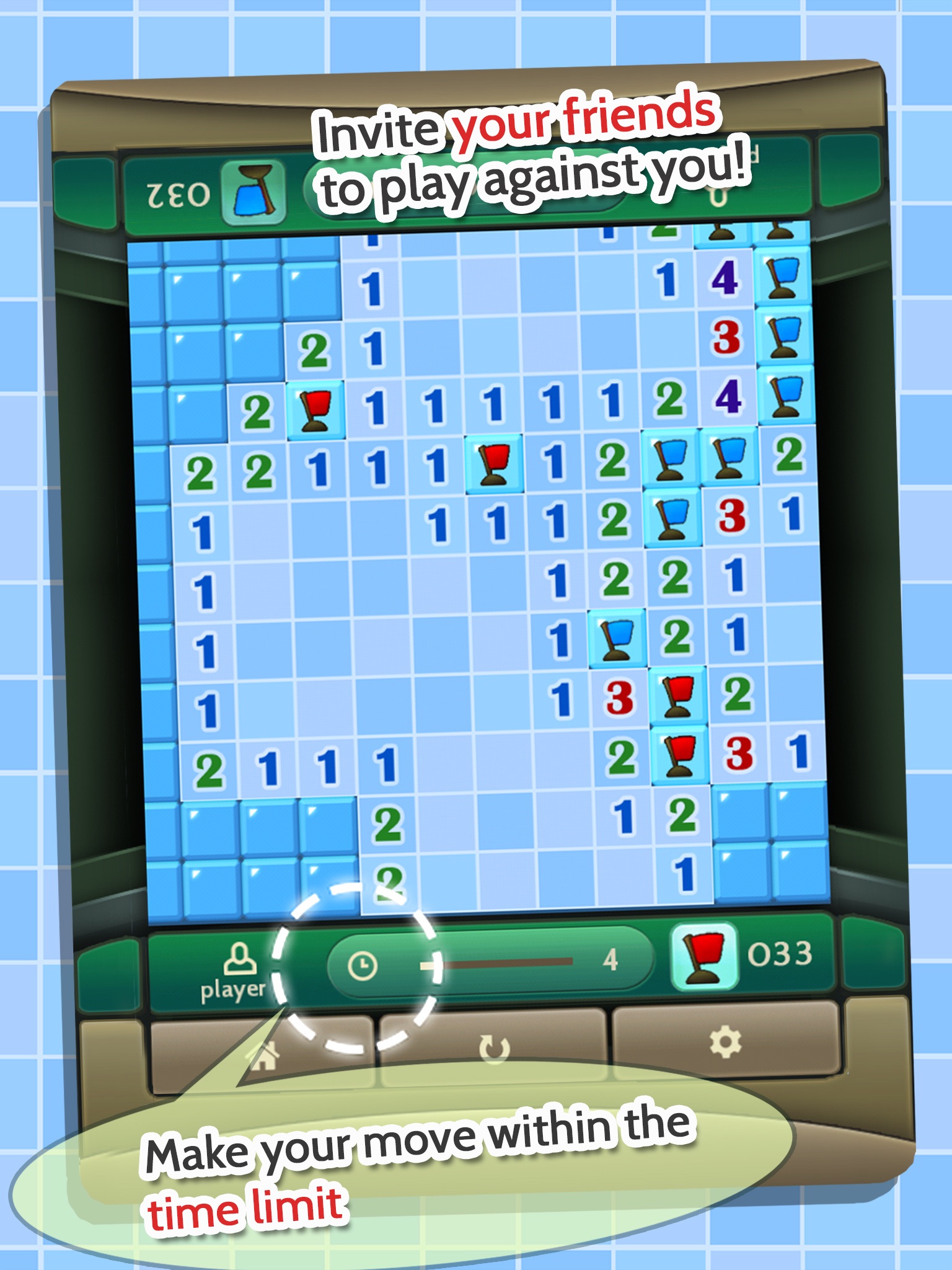 Activate “detector” to safely reveal mines nearby.