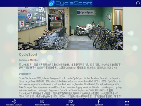 We provide more than 40 types of quality bikes for biker to choose to ride. Daily rent is from HK$80-200. Premium bike is up to HK$350. CycleSport is the pioneer to provide such quality bike service in Hong Kong since 2011. Furthermore, bike storage, buy or sale, organise group activities and maintenance services are all part of CycleSport business.